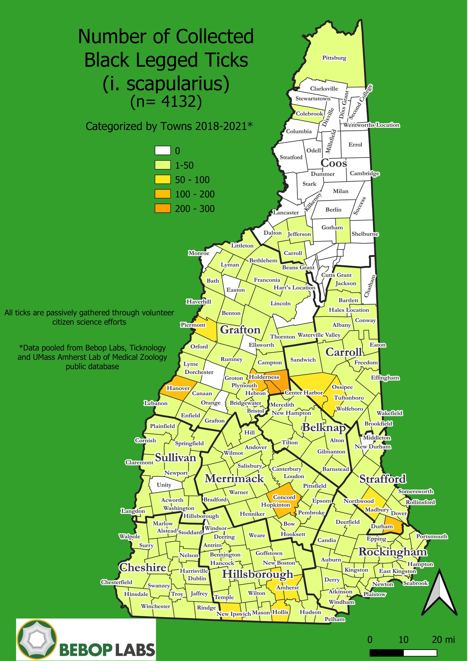 Below are interactive maps that reflect the data collected by BeBop Labs Click on the map to zoom in and find ticks near you.